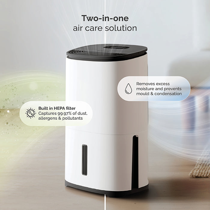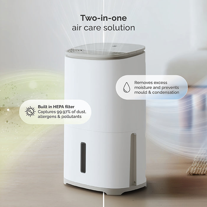 Customers tell us that they never put their dehumidifiers away. In fact, they stay in the same area of the home all the time. So we have designed Arete® to be stylish so that it looks great wherever you put it. It sits flush to the wall, has hidden castors and an air purification mode means you can use it all year round too.