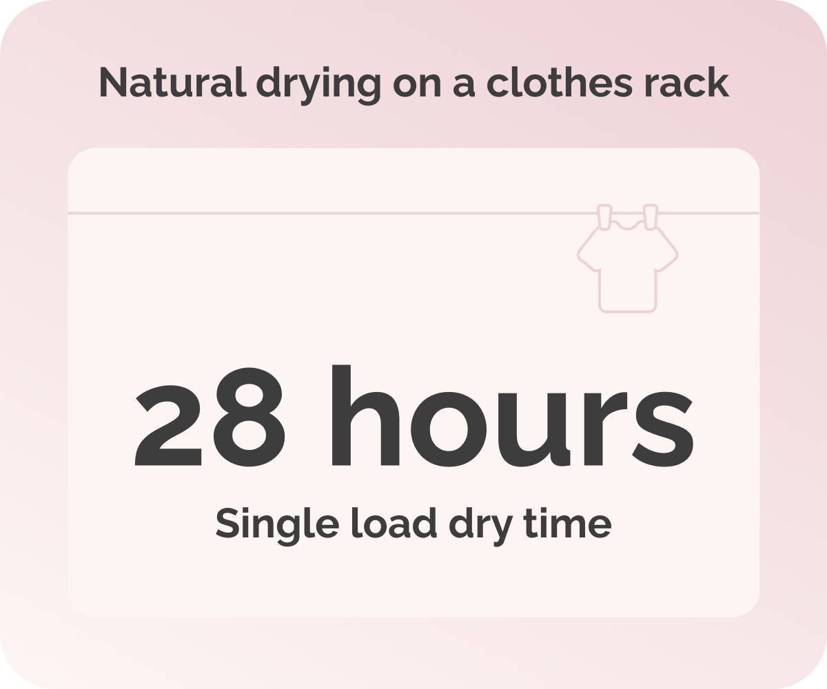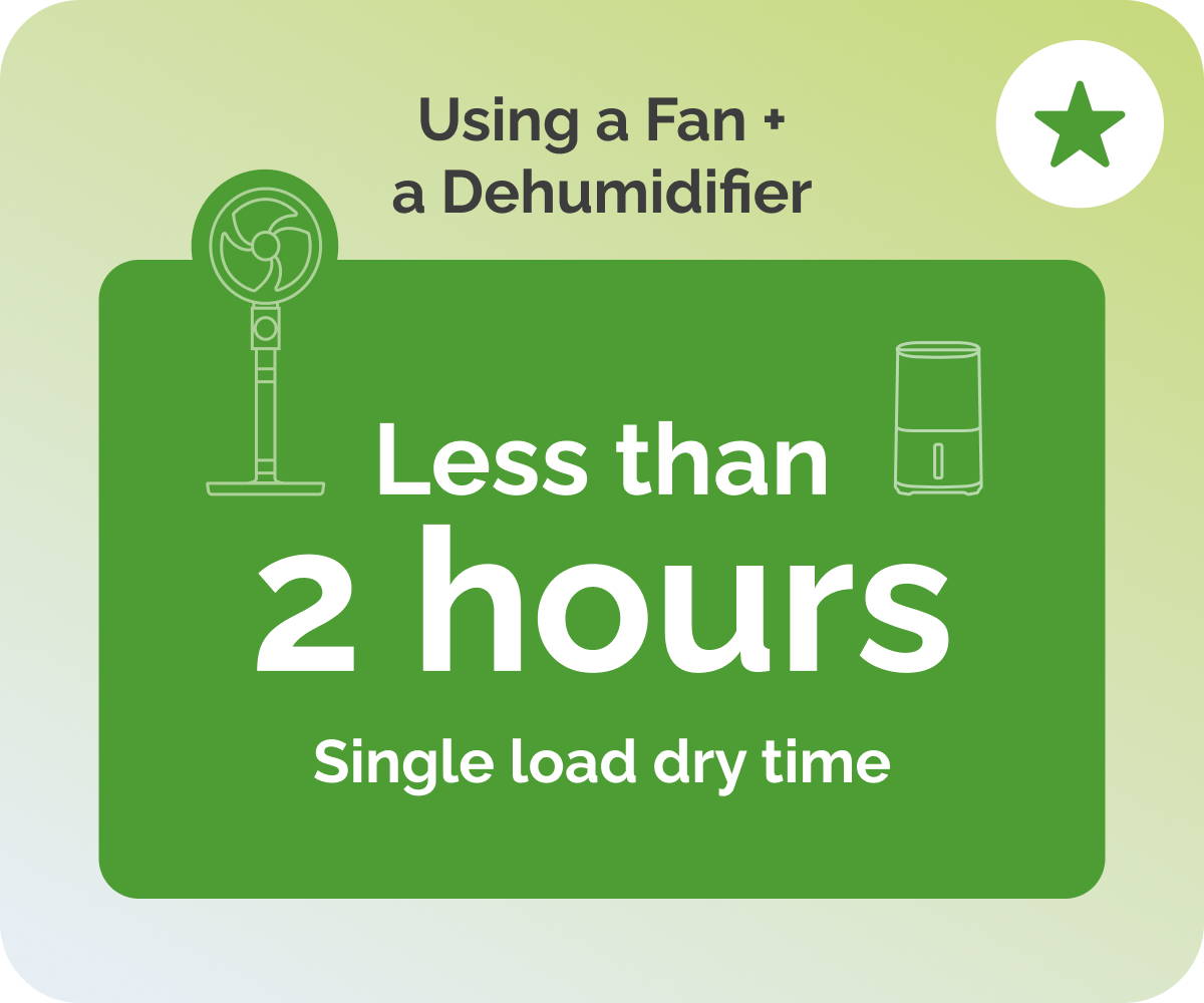 The result? A full load of laundry dry in as little as 1 hour 40 minutes when optimised with a fan, at a fraction of the cost of a tumble dryer, and without leaving your home feeling damp.
