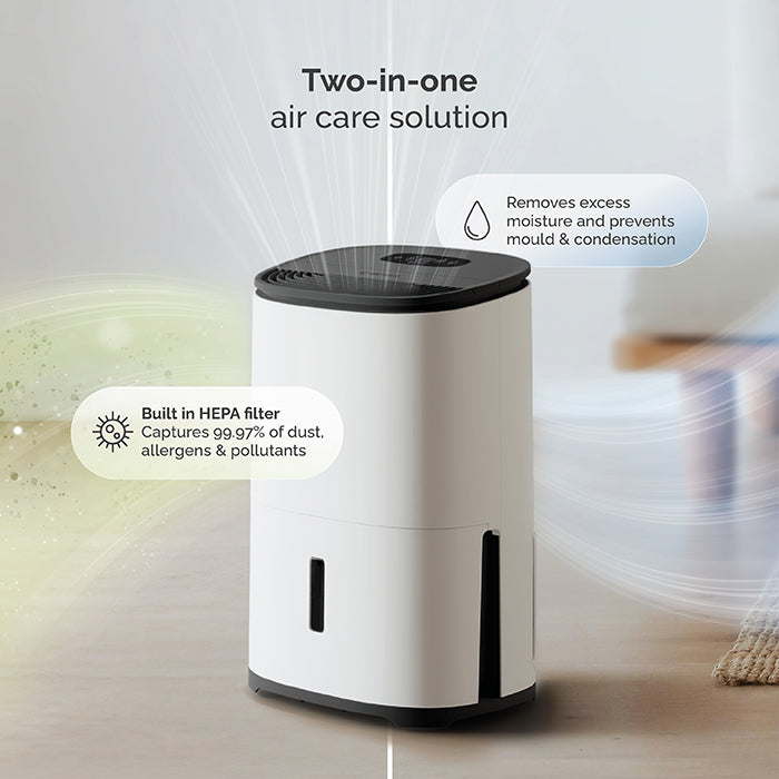 Perfect for areas with mould, condensation or damp - suitable for use in flats, apartments, single rooms and smaller properties. A two-in-one dehumidifier and air purifier, saving you money straight away.